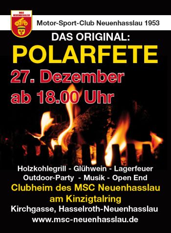 Der Motorsportclub Neuenhasslau 1953 im DMV kann auf ein äußerst erfolgreiches Jahr 2015 zurückblicken. Nach einem Jugend-Kartslalom und dem 1. Mofarennen auf dem Kinzigtalring wurde kürzlich noch die Siegerehrung der DMV-Hessenmeisterschaft in Bruchköbel-Niederissigheim durchgeführt. Alle drei Veranstaltungen konnte der Vorstand des Hasselrother Vereins positiv bilanzieren, doch jetzt will er zum Jahresende, wie in den vergangenen beiden Jahren, noch „einen draufsetzen“: Am Sonntag, 27. Dezember, also direkt nach Weihnachten, findet als Abschlussveranstaltung 2015 die Kultfete der 1990er-Jahre statt: Ab18.00 Uhr steigt die legendäre Polarfete.