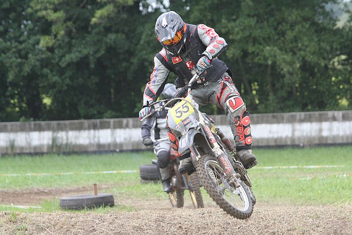 Mit Vollgas ging es in die Zweikämpfe und Ellenbogen an Ellenbogen in die Kurven. Für die Streckenposten gab es erneut jede Menge Flatterband zu flicken und Reifenstapel zu richten, denn die ca. 960 Meter lange Spezialstrecke mit Sprüngen, Wasserloch und Waschbrett hatte es in sich und forderte Mensch und Maschine alles ab.