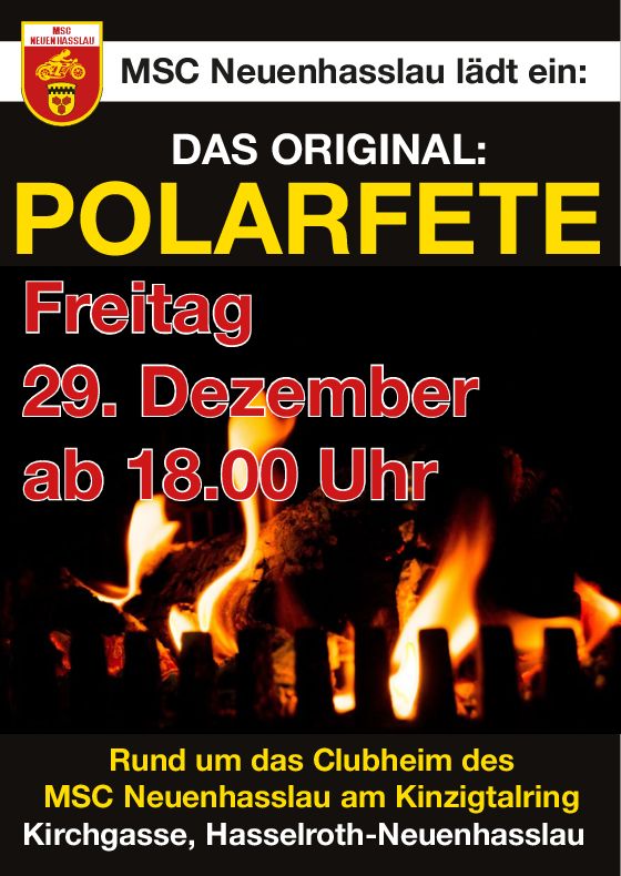 Die POLAFETE ist die Kultveranstaltung des MSC Neuenhasslau, die alljährlich "zwischen den Jahren" im tiefsten Winter stattfindet. Dieses Jahr am Freitag, 29. Dezember.
