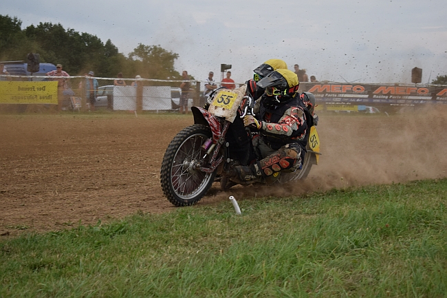 Einziger Pechvogel des MSC Neuenhasslau war am Wochenende Seitenwagenfahrer Imanuel Schramm. Nachdem er am Samstagabend beim Sandbahnrennen in Werlte noch gegen stärkste internationale Konkurrenz Platz 3 belegt hatte, konnte Schramm das am Sonntagmittag in Angenrod nicht wiederholen. Nachdem er und Beifahrer Patrick Löffler im ersten Lauf unverschuldet gestürzt waren, konnten sie noch den Wiederholungslauf gewinnen. Doch in seinem dritten Rennlauf stürzte das Team erneut am Start und verfehlte damit die Finalläufe auf Rang 9.