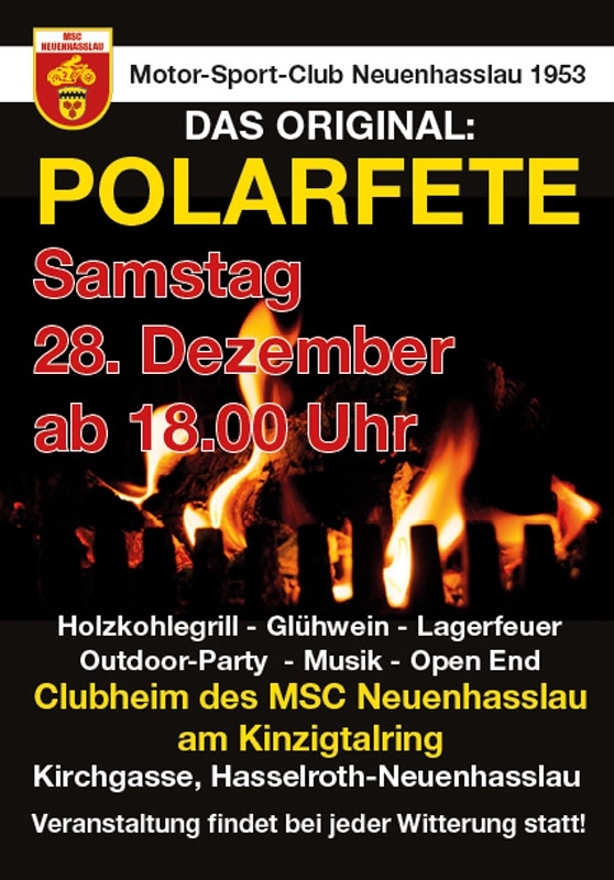 Für seine Kultveranstaltung „Polarfete“ hat der MSC Neuenhasslau einen festen Termin eingerichtet, den sich jeder einprägen kann: Am Samstag nach Weihnachten ist Polarfete. Und der fällt dieses Jahr auf den 28. Dezember.