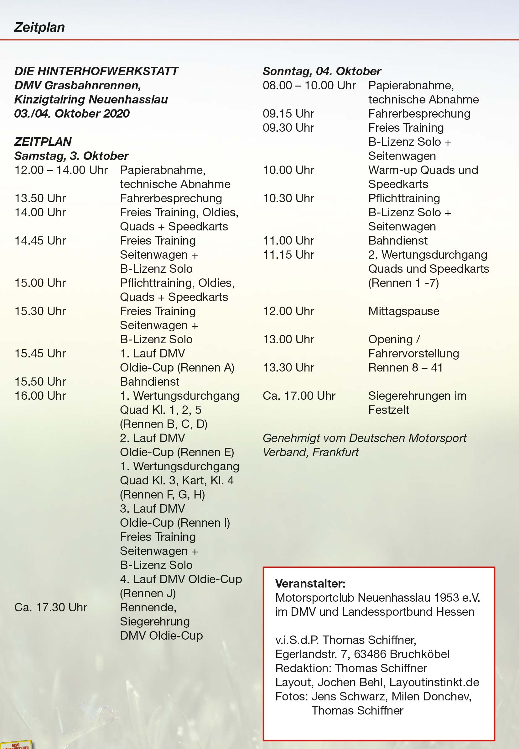 Der Zeitplan für das HINTERHOFWERKSTATT DMV Grasbahnrennen am 3. und 4. Oktober in Neuenhasslau