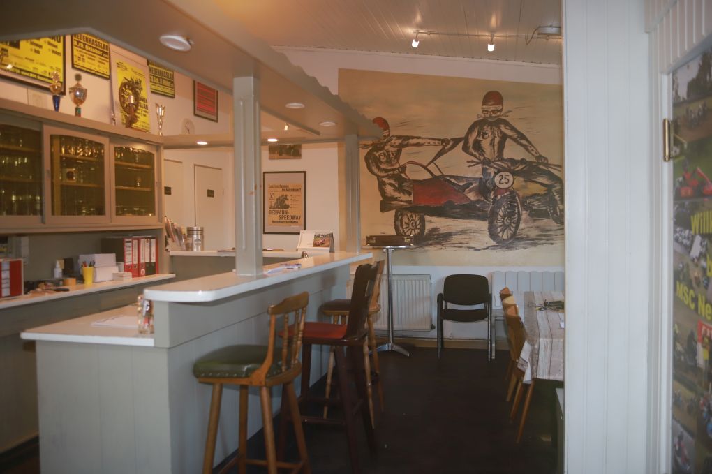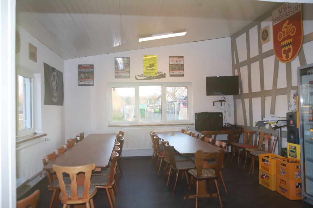 Im Clubheim gibt es den Thekenereich, Getränke-Kühlschrank, zwei Toiletten, eine komplett eingerichtete Küche mit Geschirr.